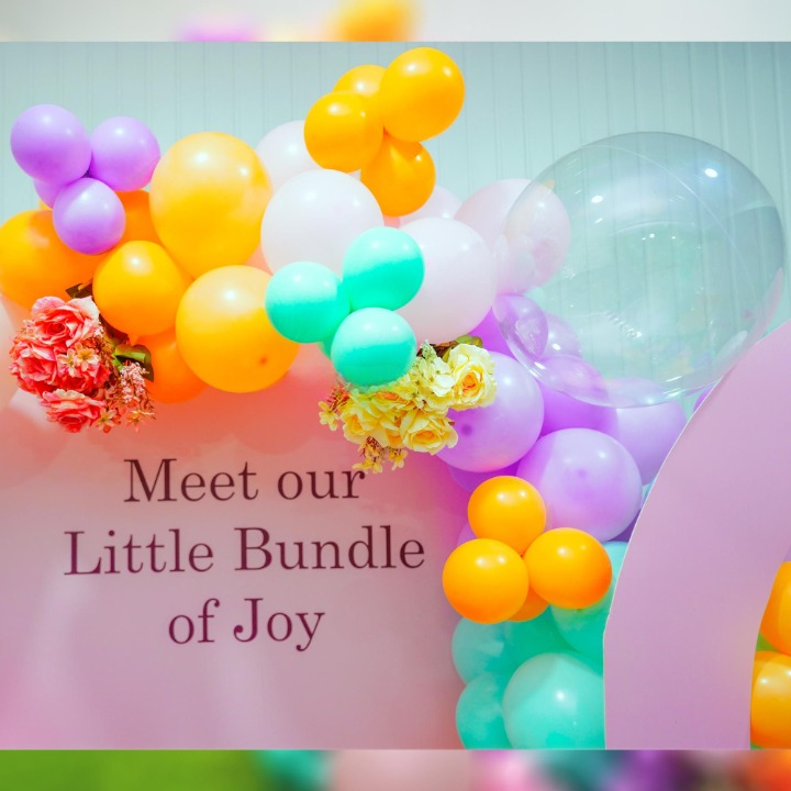 The pink arch and signage reading “Meet our Little Bundle of Joy” adds a personalized and heartwarming element, making it perfect for naming ceremonies, baby arrival announcements, or baby showers.