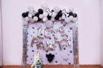 Make your kid’s or pet’s birthday paws-itively fun with our adorable Dog Puppy Theme Birthday Decoration! Featuring a cheerful “LET’S PAWTY” silver balloon banner, this setup is decorated with black-and-white balloons, bone cutouts, paw-printed balloons, and shiny foil curtains.