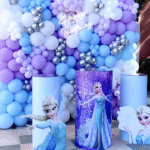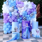 This elegant setup is perfect for creating a photo-ready birthday celebration that your little one will never forget. The soft color palette, sparkling silver accents, and iconic Frozen design elements make this decor ideal for a Frozen-themed birthday party, princess event, or winter wonderland celebration.