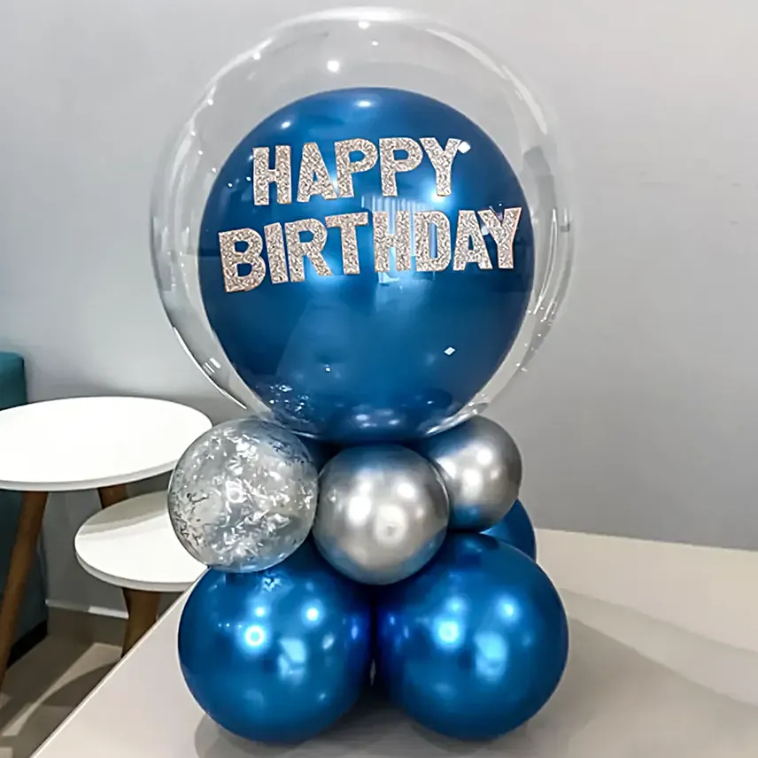 Delight a loved one with our Happy Birthday Chrome Balloon Set, a burst of celebration and joy. The whimsical balloon arrangement makes for a dazzling display. The surprise deepens with a Bobo balloon concealing a blue balloon inside. Adorned with a “Happy Birthday” silver sticker, this set is the ultimate gift for creating cherished memories. Brighten their special day with laughter and magic, a heartfelt gesture that celebrates their happiness.