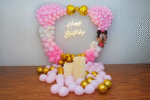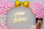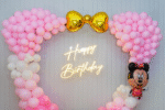 Celebrate your little one’s special day in style with our Pink and Gold Minnie Mouse Balloon Decoration. Designed in the iconic Minnie silhouette with a golden bow topper and pastel pink balloons, this setup includes a soft neon “Happy Birthday” sign, a cute Minnie foil balloon, and golden and blush balloon accents.